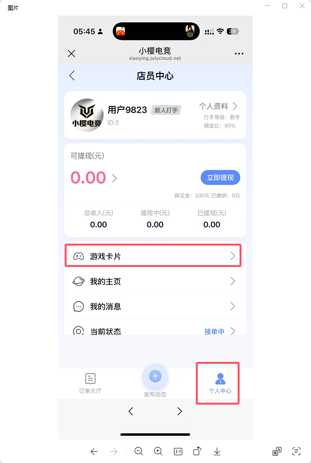 点击进入:店员端→点击个人中心→点击游戏卡片