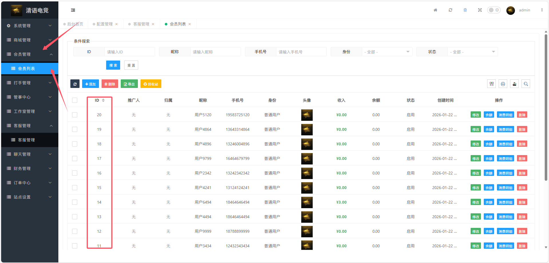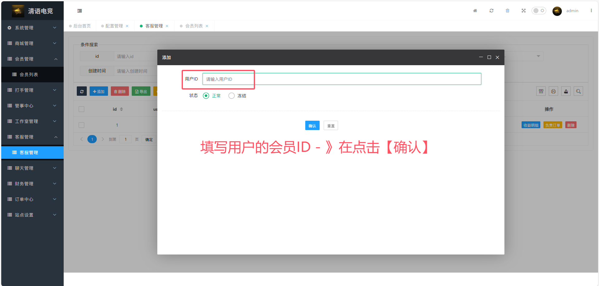 获取到会员ID- 》在客服管理- 》添加客服